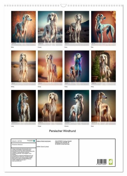QUALITÄT - Hochwertiger Fotokalender mit 12 wunderschönen Motiven auf lichtbeständigem Bilderdruckpapier, robuste Spiralbindung mit Aufhängebügel.NACHHALTIG - deutliche Abfallreduzierung durch bedarfsgerechte Einzelstückfertigung, umweltfreundliches FSC-zertifiziertes Papier, Produktion in Deutschland, klimabewusste Logistik.PERFEKTES GESCHENK - Kalender für Freunde und Familie, für Kinder und Erwachsene, jung und alt, zu Weihnachten, Geburtstag oder zwischendurch.VIELFALT - Bildkalender in verschiedenen Formaten, z.B. DIN A5, DIN A4, DIN A3 sowie DIN A2. Ob Naturmotiv, Gemälde oder Fotos, ideal für einpersönliches Wohlfühlambiente.Der Persische Windhund auch bekannt als Saluki ist eine majestätische Rasse die seit jahrhunderten im Nahen Osten gezüchtet wird. von Autor(in): Steffen Gierok ; Magik Artist Design