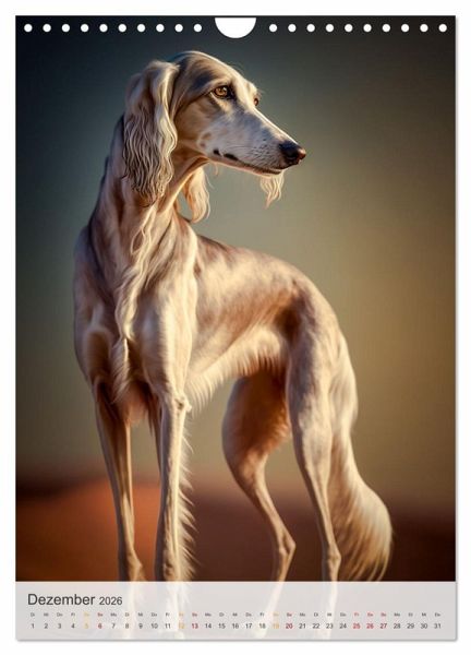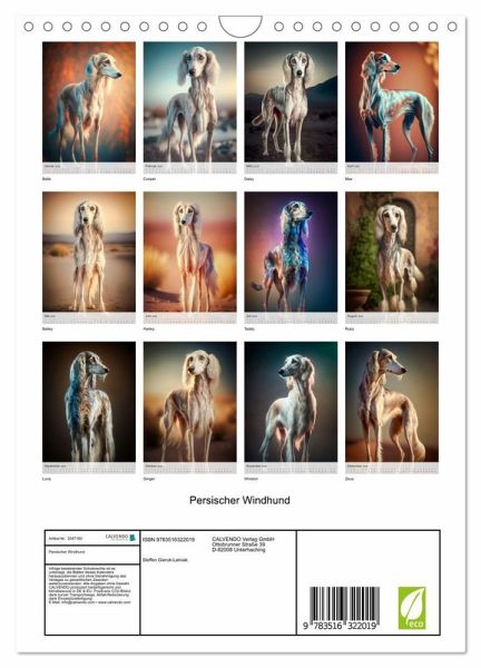 QUALITÄT - Hochwertiger Fotokalender mit 12 wunderschönen Motiven auf lichtbeständigem Bilderdruckpapier, robuste Spiralbindung mit Aufhängebügel.NACHHALTIG - deutliche Abfallreduzierung durch bedarfsgerechte Einzelstückfertigung, umweltfreundliches FSC-zertifiziertes Papier, Produktion in Deutschland, klimabewusste Logistik.PERFEKTES GESCHENK - Kalender für Freunde und Familie, für Kinder und Erwachsene, jung und alt, zu Weihnachten, Geburtstag oder zwischendurch.VIELFALT - Bildkalender in verschiedenen Formaten, z.B. DIN A5, DIN A4, DIN A3 sowie DIN A2. Ob Naturmotiv, Gemälde oder Fotos, ideal für einpersönliches Wohlfühlambiente.Der Persische Windhund auch bekannt als Saluki ist eine majestätische Rasse die seit jahrhunderten im Nahen Osten gezüchtet wird. von Autor(in): Steffen Gierok ; Magik Artist Design