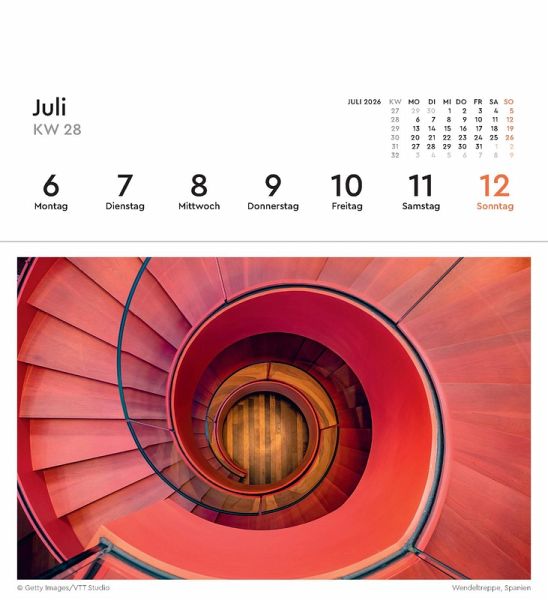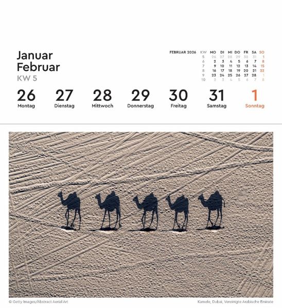 Woche um Woche begleitet dieser KUNTH Postkartenkalender "Perspektivwechsel" 2026 mit atemberaubenden Bildern durch das Jahr - auf dem Schreibtisch oder als Hingucker an der Wand. Die Postkarten zum Herauslösen können dann als Gruß versendet werden.