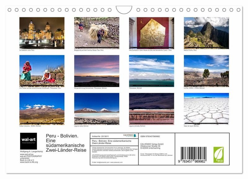 QUALITÄT - Hochwertiger Fotokalender mit 12 wunderschönen Motiven auf lichtbeständigem Bilderdruckpapier, robuste Spiralbindung mit Aufhängebügel.NACHHALTIG - deutliche Abfallreduzierung durch bedarfsgerechte Einzelstückfertigung, umweltfreundliches FSC-zertifiziertes Papier, Produktion in Deutschland, klimabewusste Logistik.PERFEKTES GESCHENK - Kalender für Freunde und Familie, für Kinder und Erwachsene, jung und alt, zu Weihnachten, Geburtstag oder zwischendurch.VIELFALT - Bildkalender in verschiedenen Formaten, z.B. DIN A5, DIN A4, DIN A3 sowie DIN A2. Ob Naturmotiv, Gemälde oder Fotos, ideal für ein persönliches Wohlfühlambiente.Eine Kultur- und Trekkingreise durch Peru und Bolivien von Autor(in): Wolfgang A. Langenkamp