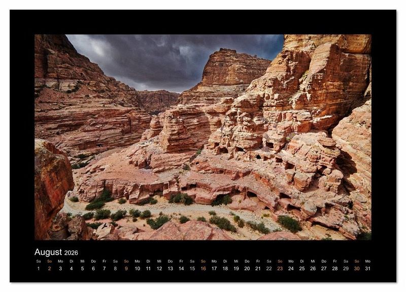 In diesem Kalender finden Sie faszinierende Fotoaufnahmen verschiedener antiker Bauten der Weltkulturerbestätte Petra in der jordanischen Wüste. Das Volk der Nabatäer modellierte mit einfachsten Mitteln großartige Tempelgräber wie das Schatzhaus oder das Kloster Ad Deir aber auch weniger bekannte Gräber aus dem Fels. Die Bilder zeigen die Einzigartigkeit dieses Ortes der nicht umsonst zu einem der sieben Weltwunder der Neuzeit gewählt wurde.