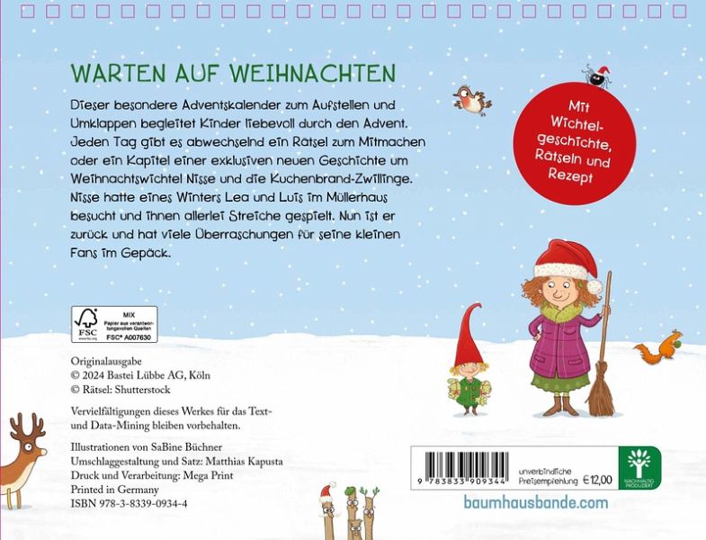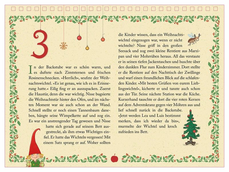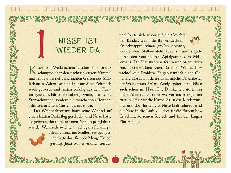 Magische Adventsfreuden: Der Mitmach-Adventskalender für Kinder!Dieser besondere Adventskalender zum Aufstellen und Umklappen begleitet Kinder liebevoll durch den Advent. Jeden Tag wartet ein neues Abenteuer: Entweder ein spannendes Rätsel zum Mitmachen oder ein exklusives Kapitel der neuen Geschichte rund um Weihnachtswichtel Nisse und Apfelhexe Petronella. Nisse hatte eines Winters Lea und Luis Kuchenbrand im Müllerhaus besucht und ihnen allerlei Streiche gespielt. Nun ist er zurück und hat viele Überraschungen für seine kleinen Fans im Gepäck. Ein perfektes Geschenk, das die Vorfreude auf Weihnachten steigert! Ein Muss für kleine Entdecker und große Weihnachtsfans.