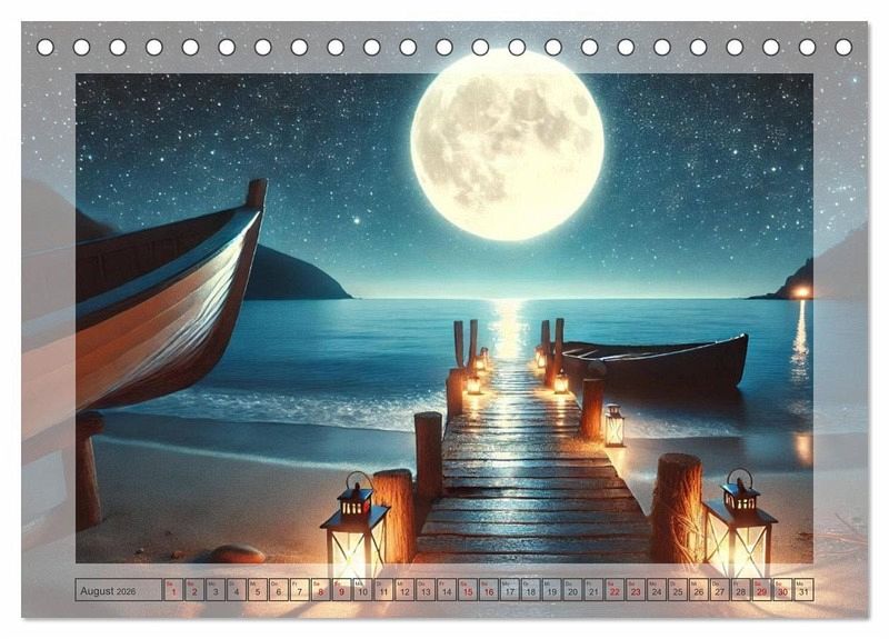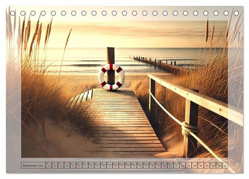 Lassen Sie sich von den einzigartigen Stegen verzaubern, die das ganze Jahr über in atemberaubende Fantasiestrände führen. Jeder Monat zeigt einen neuen, stimmungsvollen Blick auf die Küste - von verschneiten Winterstränden bis hin zu sommerlichen Dünen. Perfekt für Liebhaber ruhiger, romantischer Meereslandschaften, die die Schönheit der Natur zu jeder Jahreszeit schätzen. Die Bilder wurden mit Hilfe einer KI erstellt.