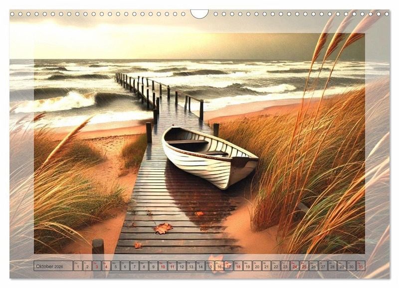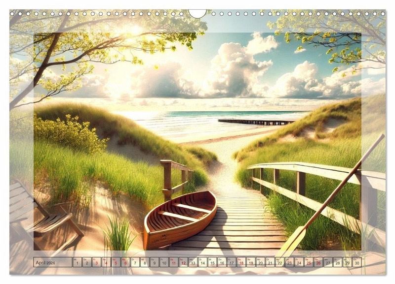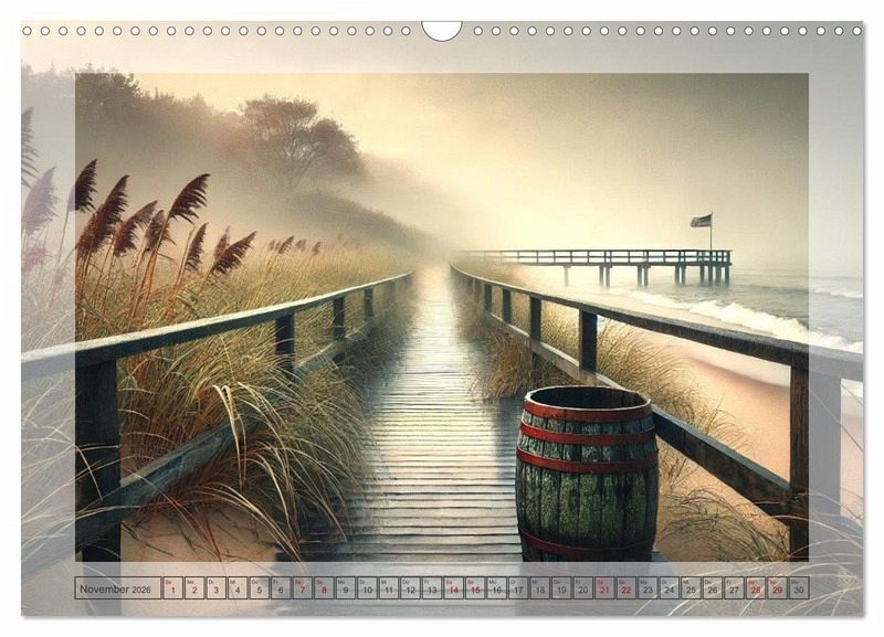 Lassen Sie sich von den einzigartigen Stegen verzaubern, die das ganze Jahr über in atemberaubende Fantasiestrände führen. Jeder Monat zeigt einen neuen, stimmungsvollen Blick auf die Küste - von verschneiten Winterstränden bis hin zu sommerlichen Dünen. Perfekt für Liebhaber ruhiger, romantischer Meereslandschaften, die die Schönheit der Natur zu jeder Jahreszeit schätzen. Die Bilder wurden mit Hilfe einer KI erstellt.