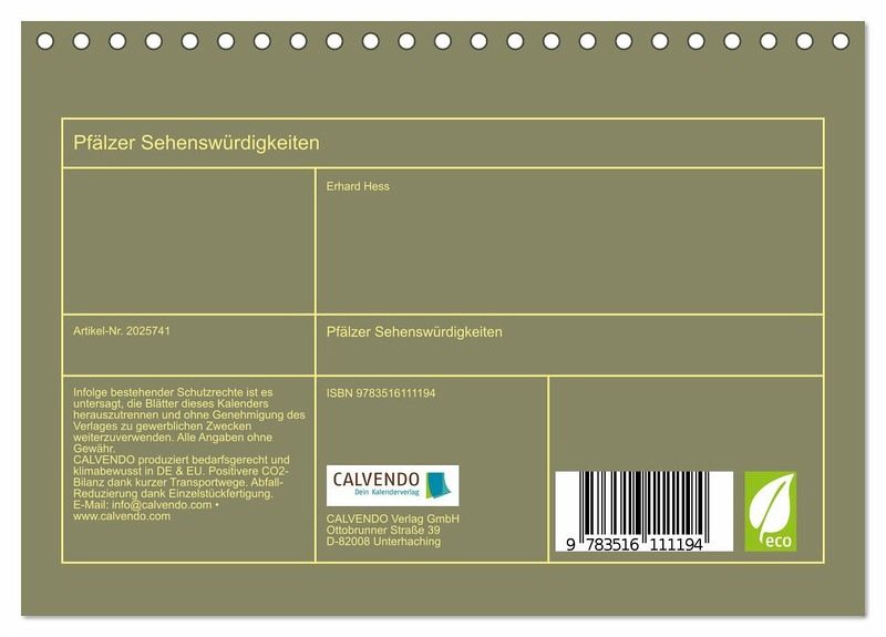 digem Bilderdruckpapier, robuste Spiralbindung.NACHHALTIG - deutliche Abfallreduzierung durch bedarfsgerechte Einzelstückfertigung, umweltfreundliches FSC-zertifiziertes Papier, Produktion in Deutschland, klimabewusste Logistik.PERFEKTES GESCHENK - Kalender für Freunde und Familie, für Kinder und Erwachsene, jung und alt, zu Weihnachten, Geburtstag oder zwischendurch.VIELFALT - Bildkalender in verschiedenen Formaten, z.B. DIN A5, DIN A4, DIN A3 sowie DIN A2. Ob Naturmotiv, Gemälde oder Fotos, ideal für ein persönliches Wohlfühlambiente.Ein kleiner Querschnitt durch die Sehenswürdigkeiten der Pfalz von Autor(in): papabaer125