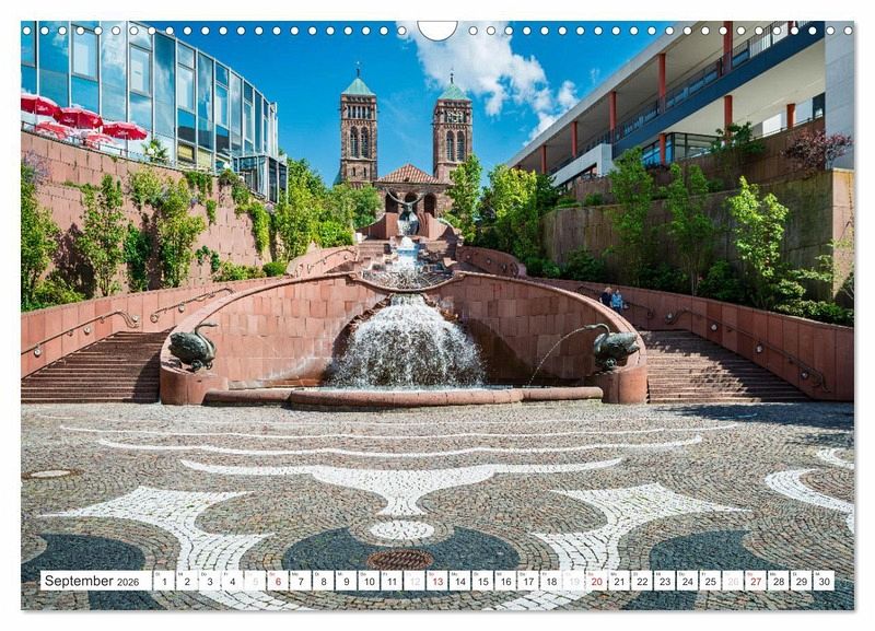 September: Schloßbrunnen, Schloßplatz und Schloßtreppen in Pirmasens