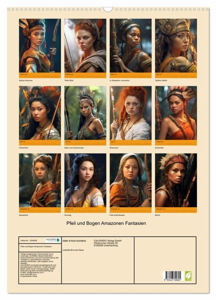Mit unserem Kalender "Pfeil und Bogen Amazonen Fantasien" holst du dir nicht nur ein stylisches Wohnaccessoire in deine vier Wände, sondern auch eine inspirierende Hommage an die Schönheit und Stärke von Frauen aus aller Welt. Sichere dir jetzt dein Exemplar und lass dich von den Amazonen, welche mit Hilfe der KI erstellt wurden, verzaubern!
