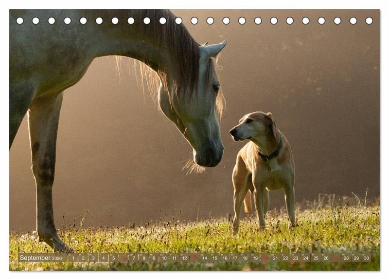 Pferd und Hund sind die besten Freunde des Menschen. Oft verstehen sich die unterschiedlichen Vierbeiner auch untereinander sehr gut. Lassen Sie sich verzaubern von der harmonischen Vertrautheit von Anglo Araber, Welsh Pony und Azawakh Ridgeback. Ein wunderbares Geschenk für alle Pferde und Hunde Liebhaber.