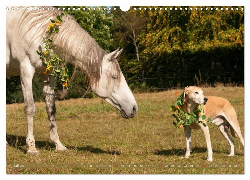 Pferd und Hund sind die besten Freunde des Menschen. Oft verstehen sich die unterschiedlichen Vierbeiner auch untereinander sehr gut. Lassen Sie sich verzaubern von der harmonischen Vertrautheit von Anglo Araber, Welsh Pony und Azawakh Ridgeback. Ein wunderbares Geschenk für alle Pferde und Hunde Liebhaber.