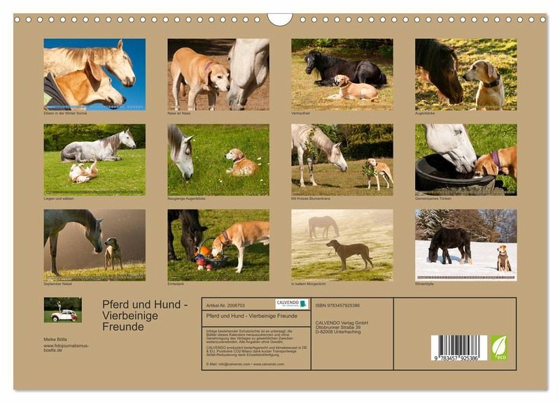 QUALITÄT - Hochwertiger Fotokalender mit 12 wunderschönen Motiven auf lichtbeständigem Bilderdruckpapier, robuste Spiralbindung mit Aufhängebügel.NACHHALTIG - deutliche Abfallreduzierung durch bedarfsgerechte Einzelstückfertigung, umweltfreundliches FSC-zertifiziertes Papier, Produktion in Deutschland, klimabewusste Logistik.PERFEKTES GESCHENK - Kalender für Freunde und Familie, für Kinder und Erwachsene, jung und alt, zu Weihnachten, Geburtstag oder zwischendurch.VIELFALT - Bildkalender in verschiedenen Formaten, z.B. DIN A5, DIN A4, DIN A3 sowie DIN A2. Ob Naturmotiv, Gemälde oder Fotos, ideal für ein persönliches Wohlfühlambiente.Pferd, Pony und Hund in Harmonie von Autor(in): Meike Bölts
