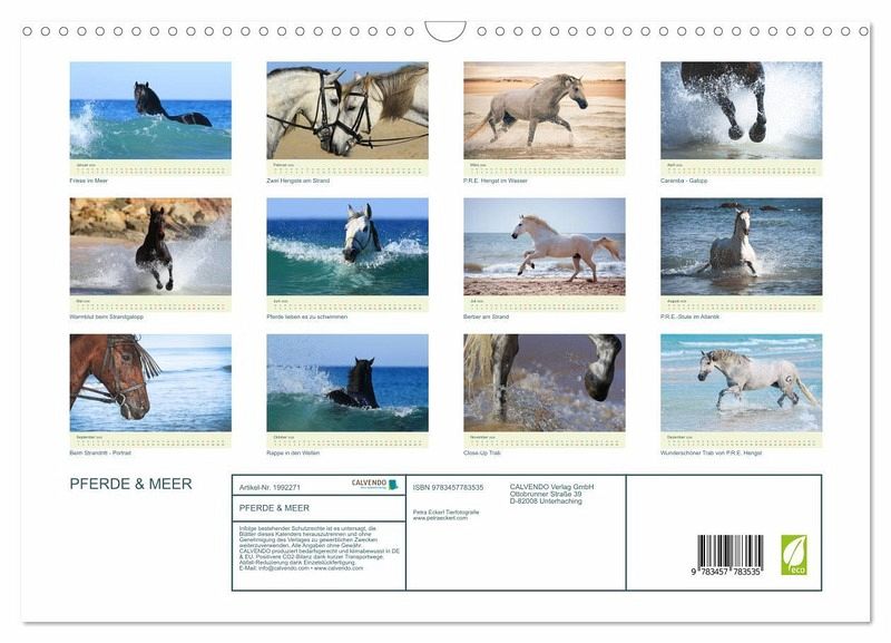 QUALITÄT - Hochwertiger Fotokalender mit 12 wunderschönen Motiven auf lichtbeständigem Bilderdruckpapier, robuste Spiralbindung mit Aufhängebügel.NACHHALTIG - deutliche Abfallreduzierung durch bedarfsgerechte Einzelstückfertigung, umweltfreundliches FSC-zertifiziertes Papier, Produktion in Deutschland, klimabewusste Logistik.PERFEKTES GESCHENK - Kalender für Freunde und Familie, für Kinder und Erwachsene, jung und alt, zu Weihnachten, Geburtstag oder zwischendurch.VIELFALT - Bildkalender in verschiedenen Formaten, z.B. DIN A5, DIN A4, DIN A3 sowie DIN A2. Ob Naturmotiv, Gemälde oder Fotos, ideal für ein persönliches Wohlfühlambiente.Pferde im Atlantik - eine Faszination der besonderen Art ... von Autor(in): Petra Eckerl