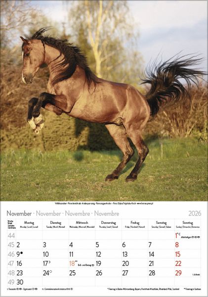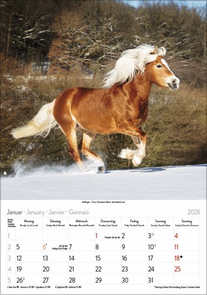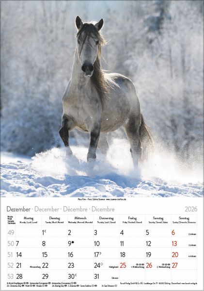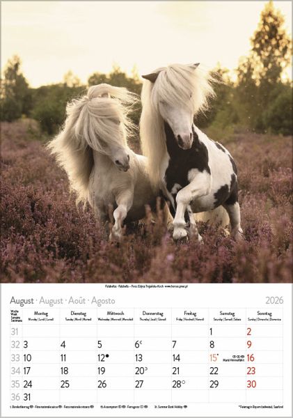 Bekannte Pferdefotografinnen haben für diesen Kalender die edelsten Rassepferde aus vielen Regionen der Erde in einzigartigen Aktionen und Situationen mit ihrer Kamera eingefangen. Eine Hommage an das Pferd als das schönste, edelste und stolzeste Haustier des Menschen.