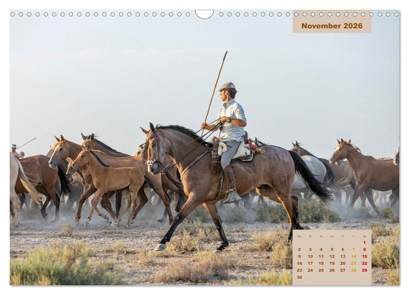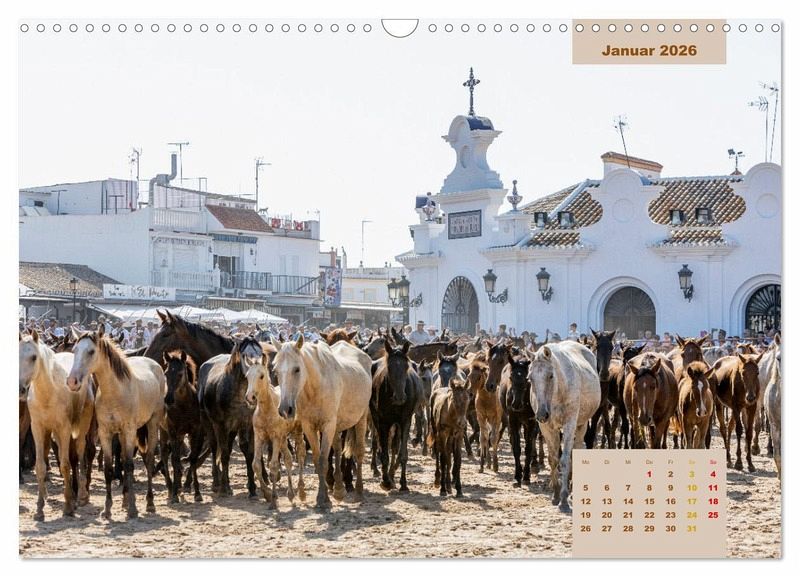 Entdecke die beeindruckende Welt Andalusiens Wildpferde mit unserem einzigartigen Kalender! Die Marismeño-Pferde, die als Vorfahren der amerikanischen Mustangs gelten, wurden einst von Kolumbus nach Amerika gebracht und prägen bis heute den Doñana Nationalpark. Seit Jahrhunderten durchstreifen sie die weiten Marismas Andalusiens. Ein besonderes Highlight ist der jährliche Stutentrieb, bei dem die Wildpferde aus dem Doñana Nationalpark nach Almonte geführt werden - ein beeindruckendes Spektakel voller Tradition. Erlebe jeden Monat die faszinierende Geschichte und Schönheit dieser majestätischen Tiere - für Naturliebhaber und Pferdefreunde!