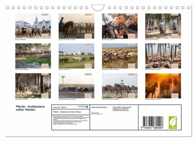 QUALITÄT - Hochwertiger Fotokalender mit 12 wunderschönen Motiven auf lichtbeständigem Bilderdruckpapier, robuste Spiralbindung mit Aufhängebügel.NACHHALTIG - deutliche Abfallreduzierung durch bedarfsgerechte Einzelstückfertigung, umweltfreundliches FSC-zertifiziertes Papier, Produktion in Deutschland, klimabewusste Logistik.PERFEKTES GESCHENK - Kalender für Freunde und Familie, für Kinder und Erwachsene, jung und alt, zu Weihnachten, Geburtstag oder zwischendurch.VIELFALT - Bildkalender in verschiedenen Formaten, z.B. DIN A5, DIN A4, DIN A3 sowie DIN A2. Ob Naturmotiv, Gemälde oder Fotos, ideal für ein persönliches Wohlfühlambiente.Andalusiens Wildpferde von Autor(in): Monica Gumm