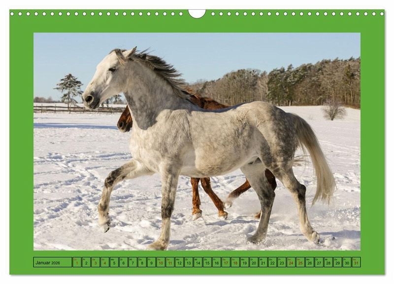 Pferde, seit Jahrhunderten sind Menschen fasziniert von diesen wunderbaren Tieren. In diesem Kalender gibt es 13 faszinierende Aufnahmen dieser klugen, warmherzigen Tieren, die das Herz vieler Menschen höher schlagen lassen.