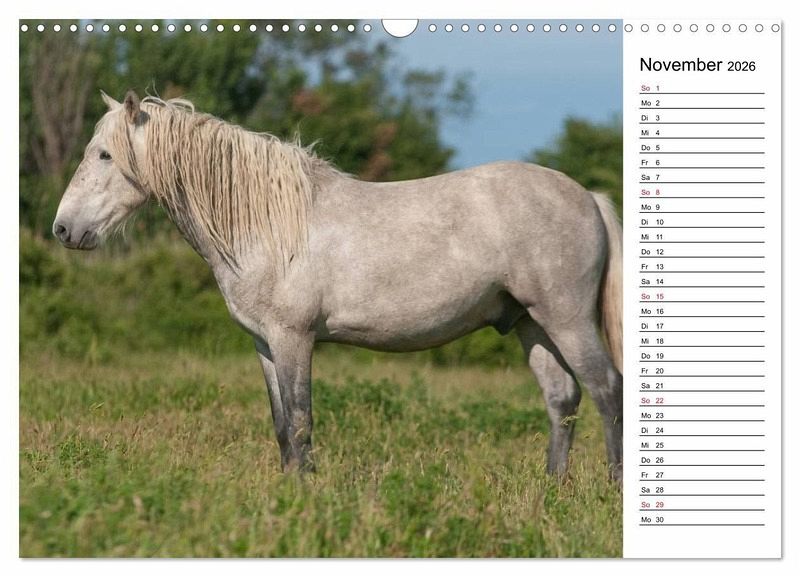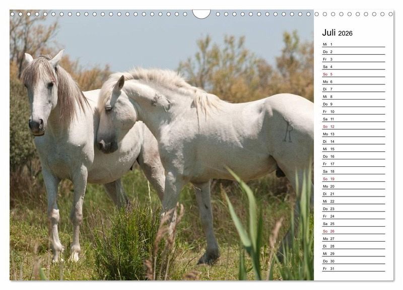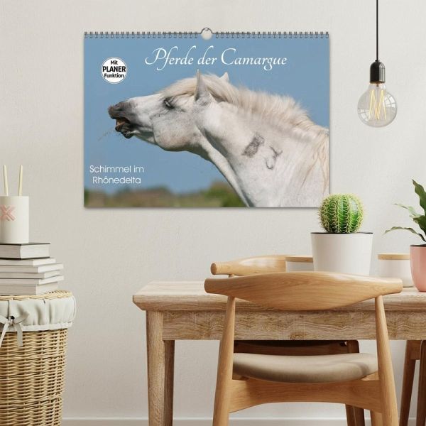 Camargue-Pferde leben schon seit Urzeiten im Süden Frankreichs. Die einzigartige Landschaft hat eine robuste und anpassungsfähige Pferderasse geformt. Noch heute leben die wunderschönen Schimmel halbwild das ganze Jahr unter freiem Himmel. Auch die Fohlen werden in Freiheit geboren. Das perfekte Geschenk für Pferdeliebhaber mit Planerfunktion.