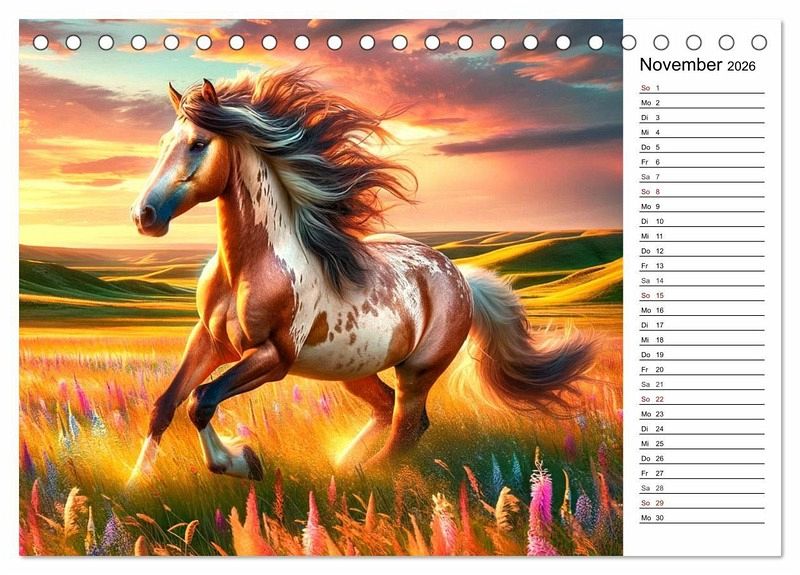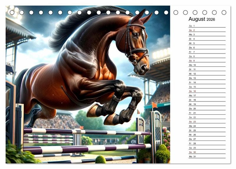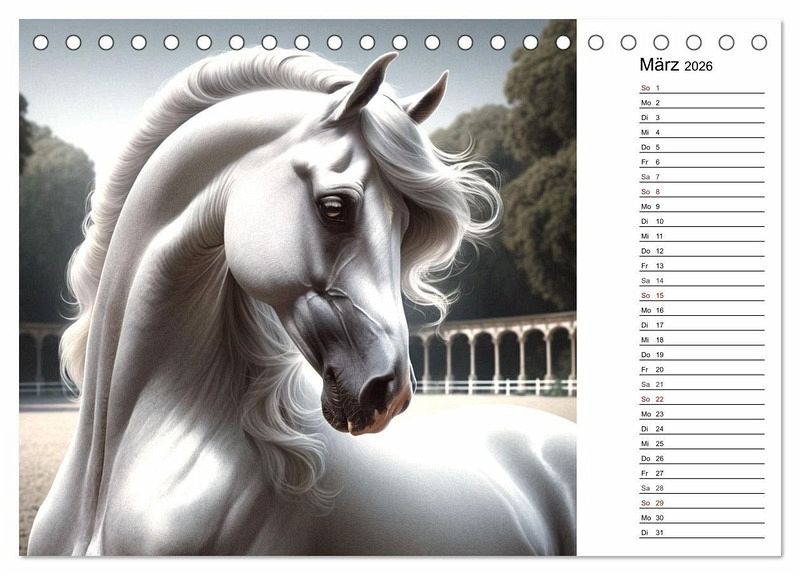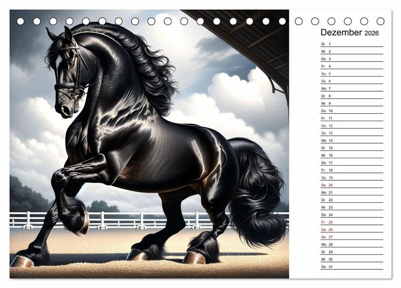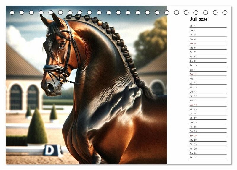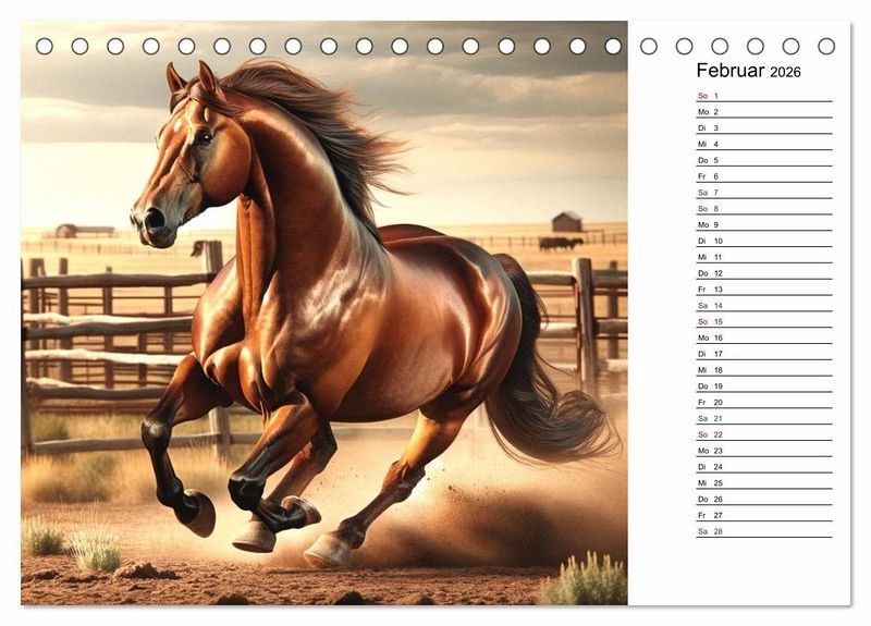Tauchen Sie ein in die faszinierende Welt der Pferde mit unserem einzigartigen Pferdekalender. Erleben Sie die Schönheit und Vielfalt edler Pferderassen in zwölf atemberaubenden Bildern, kreiert mithilfe modernster KI-Technologie. Jedes Bild erzählt die Geschichte einer einzigartigen Rasse, von majestätischen Arabern bis zu kraftvollen Quarter Horses. Mit diesem Kalender bringen Sie die Anmut und Stärke dieser majestätischen Tiere in Ihr Zuhause oder Büro. Ein Must-have für Pferdeliebhaber und Ästheten gleichermaßen!