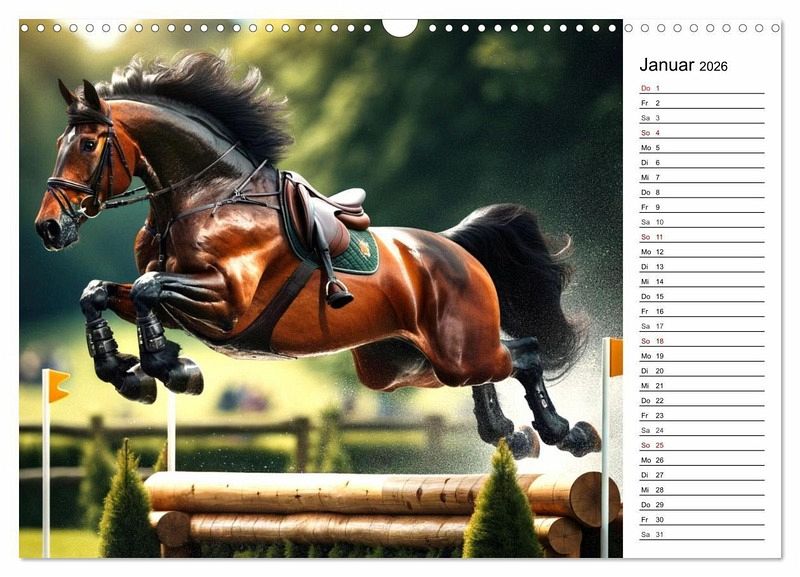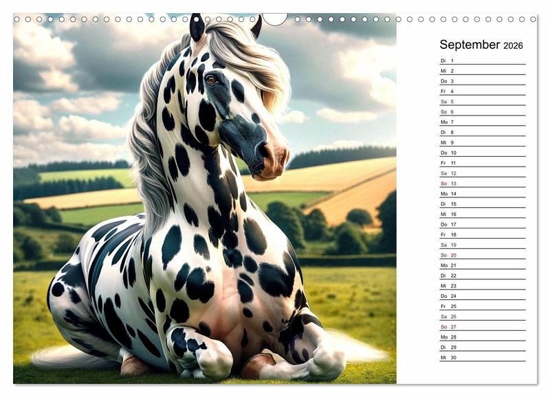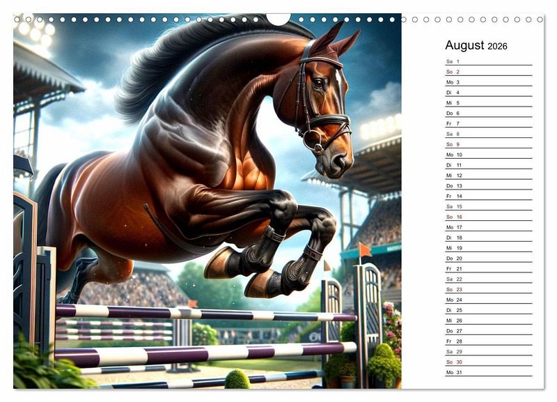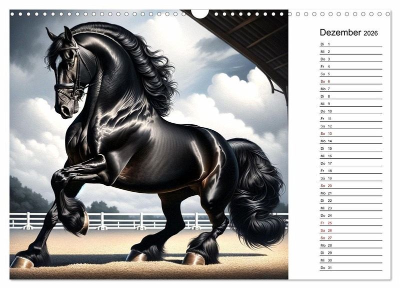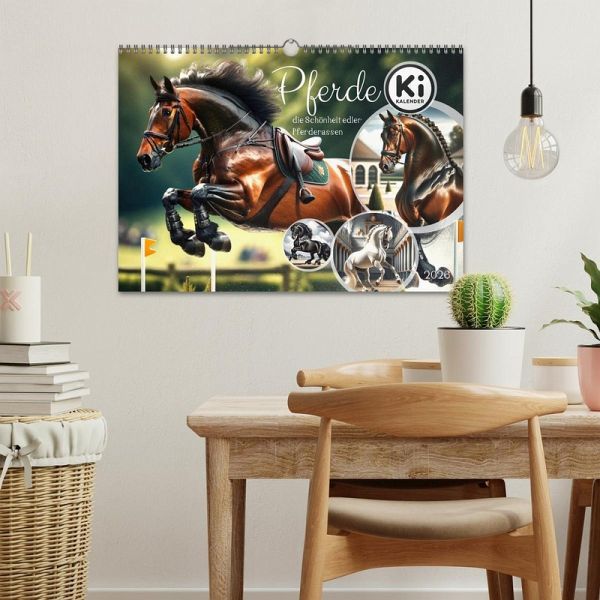 Tauchen Sie ein in die faszinierende Welt der Pferde mit unserem einzigartigen Pferdekalender. Erleben Sie die Schönheit und Vielfalt edler Pferderassen in zwölf atemberaubenden Bildern, kreiert mithilfe modernster KI-Technologie. Jedes Bild erzählt die Geschichte einer einzigartigen Rasse, von majestätischen Arabern bis zu kraftvollen Quarter Horses. Mit diesem Kalender bringen Sie die Anmut und Stärke dieser majestätischen Tiere in Ihr Zuhause oder Büro. Ein Must-have für Pferdeliebhaber und Ästheten gleichermaßen!
