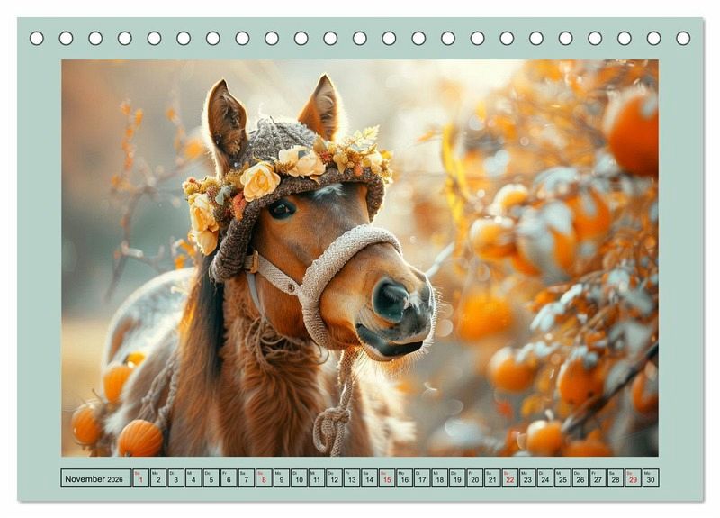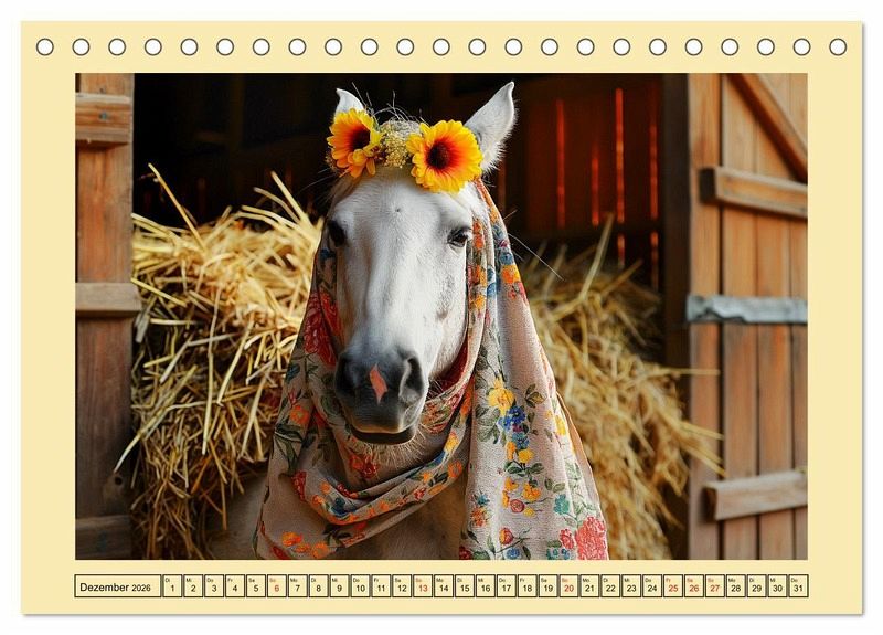 Tauchen Sie ein in die Welt der modischen Pferde! In diesem tollen Kalender posieren unsere vierbeinigen Models mit ihrem unwiderstehlichen Charme und trendigen Outfits. Jedes Bild wurde mit Hilfe von KI erstellt und mit viel Liebe zum Detail und einem Hauch von Humor gestaltet, um Ihnen zwölf Monate lang ein Lächeln ins Gesicht zu zaubern.