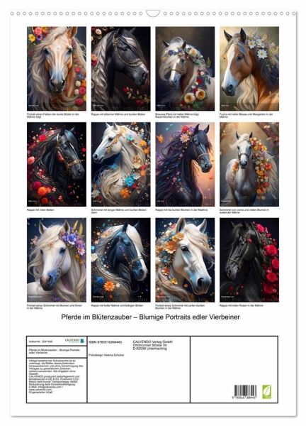 QUALITÄT - Hochwertiger Fotokalender mit 12 wunderschönen Motiven auf lichtbeständigem Bilderdruckpapier, robuste Spiralbindung mit Aufhängebügel.NACHHALTIG - deutliche Abfallreduzierung durch bedarfsgerechte Einzelstückfertigung, umweltfreundliches FSC-zertifiziertes Papier, Produktion in Deutschland, klimabewusste Logistik.PERFEKTES GESCHENK - Kalender für Freunde und Familie, für Kinder und Erwachsene, jung und alt, zu Weihnachten, Geburtstag oder zwischendurch.VIELFALT - Bildkalender in verschiedenen Formaten, z.B. DIN A5, DIN A4, DIN A3 sowie DIN A2. Ob Naturmotiv, Gemälde oder Fotos, ideal für ein persönliches Wohlfühlambiente.Pferdeportraits mit Blütenpracht von Autor(in): Fotodesign Verena Scholze