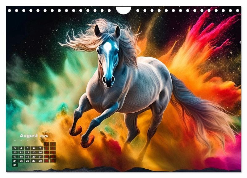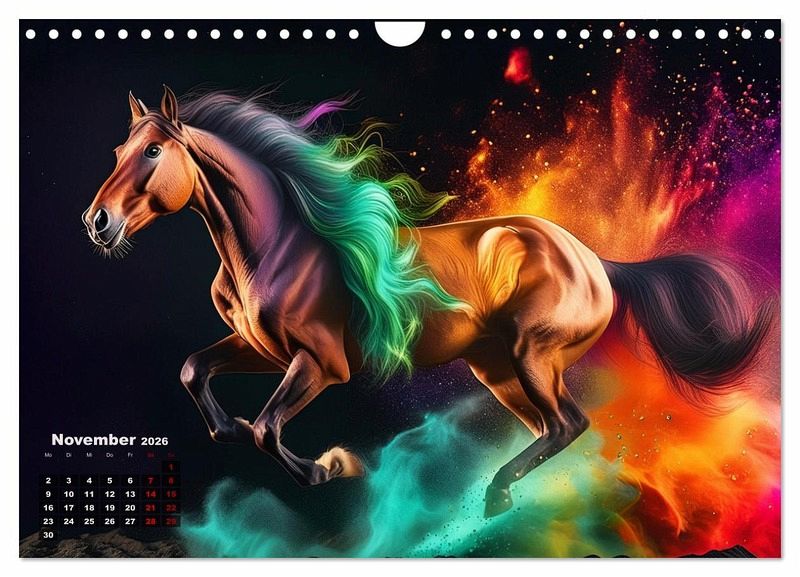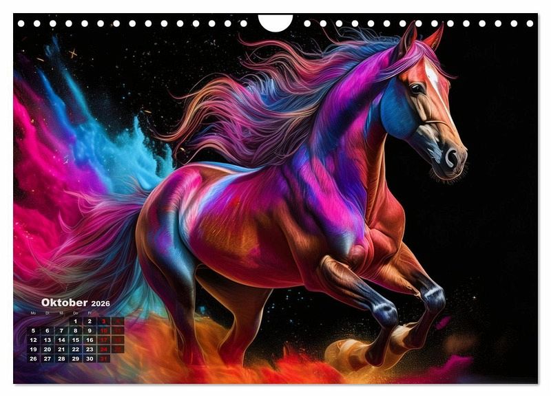 Tauche ein in die Welt der lebendigen Farben und der majestätischen Pferde! Der Kalender "Pferde im Farbenrausch" ist eine Hommage an die Schönheit und Energie dieser faszinierenden Tiere. Jedes KI generierte Bild zeigt ein anderes Pferd, das von Holi-Pulver umhüllt ist. Die Farben leuchten, die Mähne fliegt im Wind - ein visuelles Fest für die Sinne! Die Bilder entstanden nach Fotografien von Verena Scholze, die sich auf Holi Pulver Shootings spezialisiert hat. Ob für Pferdeliebhaber, Kunstenthusiasten oder einfach für dich selbst - lass dich von der Magie der Farben und kraftvollen Pferde verzaubern.