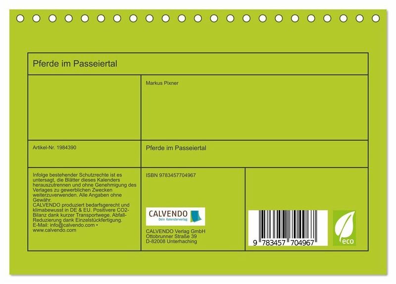 QUALITÄT - Hochwertiger Fotokalender mit 12 wunderschönen Motiven auf lichtbeständigem Bilderdruckpapier, robuste Spiralbindung.NACHHALTIG - deutliche Abfallreduzierung durch bedarfsgerechte Einzelstückfertigung, umweltfreundliches FSC-zertifiziertes Papier, Produktion in Deutschland, klimabewusste Logistik.PERFEKTES GESCHENK - Kalender für Freunde und Familie, für Kinder und Erwachsene, jung und alt, zu Weihnachten, Geburtstag oder zwischendurch.VIELFALT - Bildkalender in verschiedenen Formaten, z.B. DIN A5, DIN A4, DIN A3 sowie DIN A2. Ob Naturmotiv, Gemälde oder Fotos, ideal für ein persönliches Wohlfühlambiente.Temperamentvoll, sowie voller Lebensenergie über saftig grüne Frühlingswiesen galoppieren von Autor(in): Markus Pixner