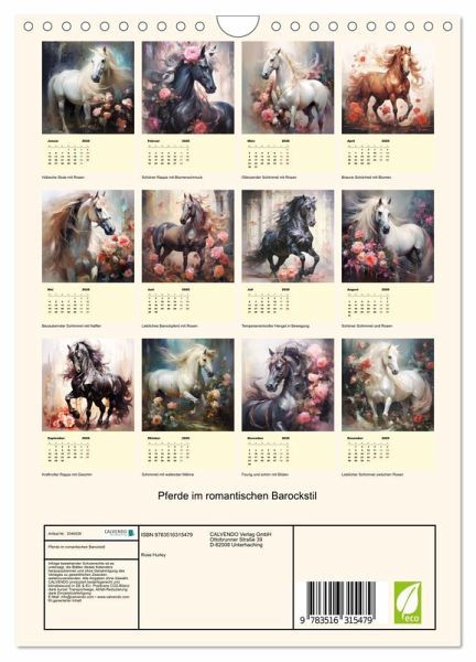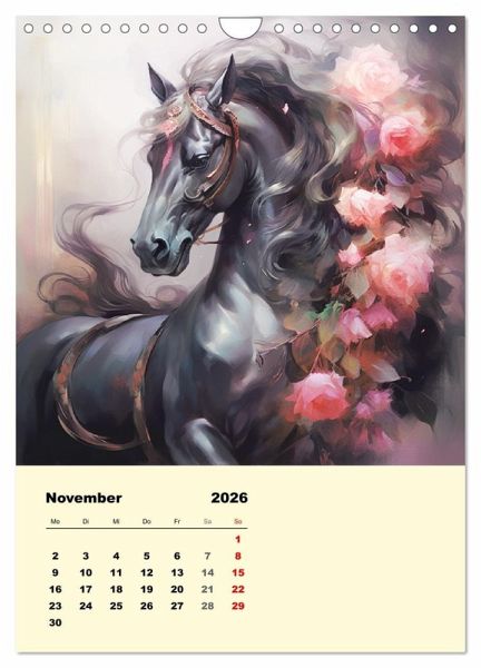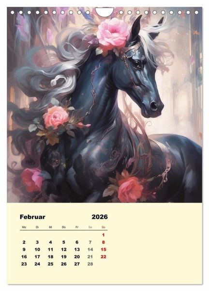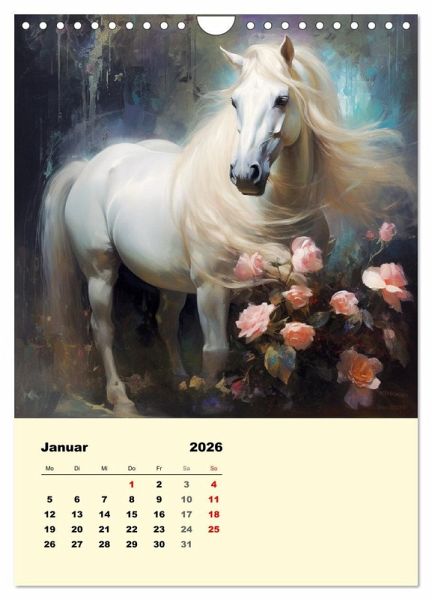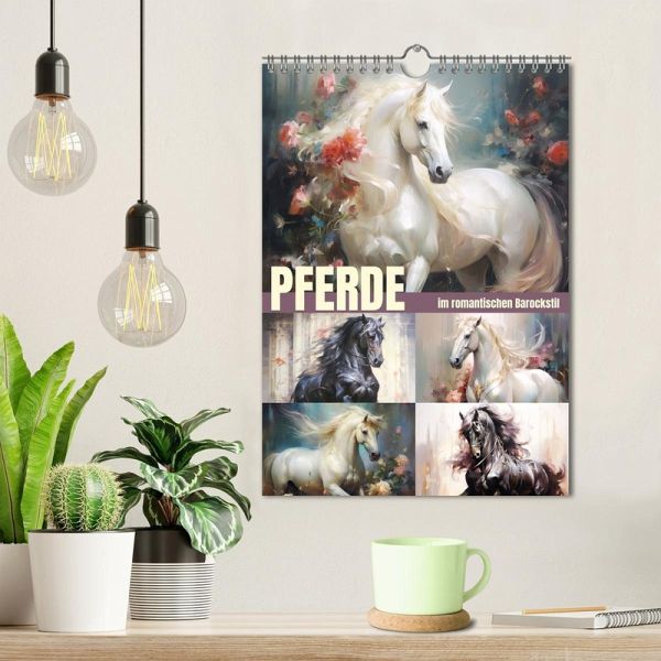 Pferde Gemälde sind eine zeitlose und elegante Dekoration, die nicht nur Pferdeliebhaber begeistert. Pferde sind würdevoll und majestätisch und dieser Kalender spiegelt ihre unglaubliche Schönheit wider. Diese romantisch-verträumten Pferdebilder wurden mit KI erstellt und bringen Freude in jedes Heim.