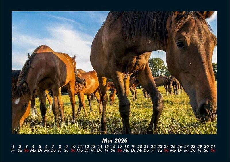 Pferde Kalender 2026 Motivkalender DIN A4 Vero-Kalender erhalten Sie mit Motiven aus den verschiedensten Themenbereichen wie Natur, Blumen und Landschaft, Tierwelt, Architektur, Reise und Urlaub, Technik, Automobil und Eisenbahn, Emotionen, Sport und Musik. Gedruckt werden die Monats-Kalender aus dem Vero Verlag auf hochwertigem Kalenderbogen in Premium-Qualität und verschiedenen Größen. Die Vielfältigkeit der Motive unserer Foto-Kalender ist dank der Zusammenarbeit mit kreativen Fotografen möglich.