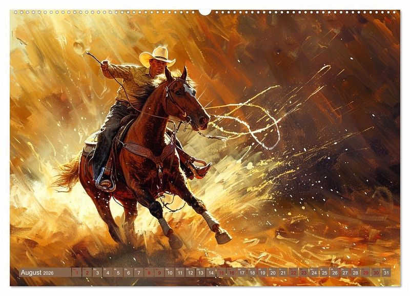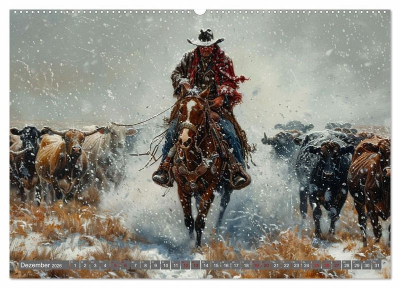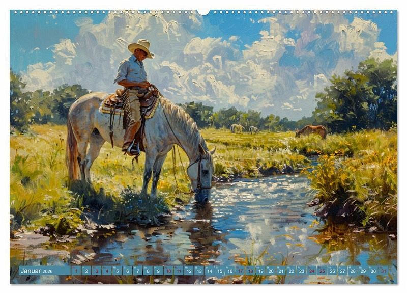 Tauchen Sie ein in die Welt der unerschrockenen Cowboys und ihrer treuen Pferde mit unserem einzigartigen KI-generierten Kalender! Jeder Monat präsentiert ein meisterhaftes Gemälde, das das wahre Leben im Wilden Westen einfängt. Sehen Sie zu, wie Cowboys bei der Arbeit die Prärie durchqueren, Rinder treiben und am Lagerfeuer Geschichten austauschen.