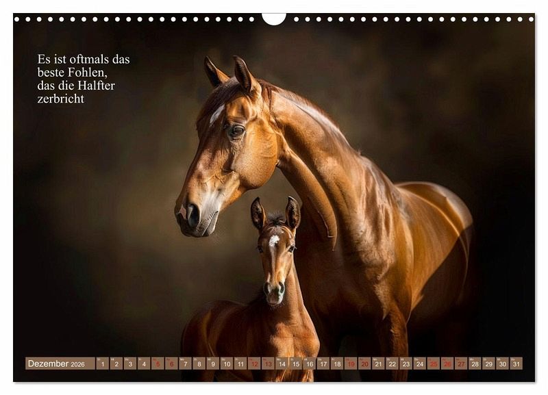 Du liebst Pferde schon dein ganzes Leben lang. Manche Menschen lieben es, Pferde zu beobachten, andere lesen lieber Bücher über sie und wieder andere wollen ein Pferd ihren Freund nennen. Erleben Sie die Welt mit ihm, genießen Sie die Freiheit auf seinem Rücken. Dieser Kalender ist eine Hommage an die Freude, die nur Pferdeliebhaber verstehen.