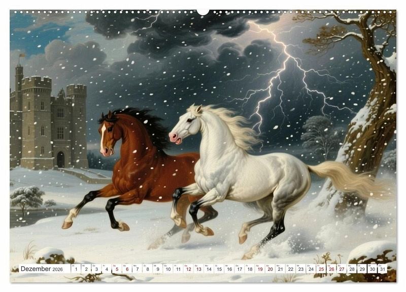 Dieser liebevoll erstellte KI-Kalender vereint die Kraft modernster Technologie mit der Seele klassischer Malerei - inspiriert von den großen Meistern wie George Stubbs und Joseph Wright of Derby.
