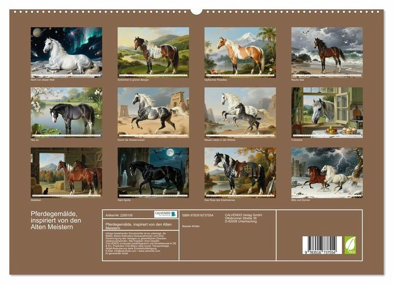 PREMIUM-LINIE - Brillanter Fotokalender mit 12 wunderschönen Motiven, Kunstdruck in Hochglanz in Museumsqualität.QUALITÄT - edle Materialien, stabile Rückwand mit 2 innovativen Einstecktaschen für eine optimale Präsentation an der Wand.NACHHALTIG - deutliche Abfallreduzierung durch bedarfsgerechte Einzelstückfertigung, umweltfreundliches FSC-zertifiziertes Papier, Produktion in Deutschland, klimabewusste Logistik.PERFEKTES GESCHENK - Kalender für Freunde und Familie, für Kinder und Erwachsene, jung und alt, zu Weihnachten, Geburtstag oder zwischendurch.Pferdebilder im Stil alter Ölgemälde von Autor(in): Talpha