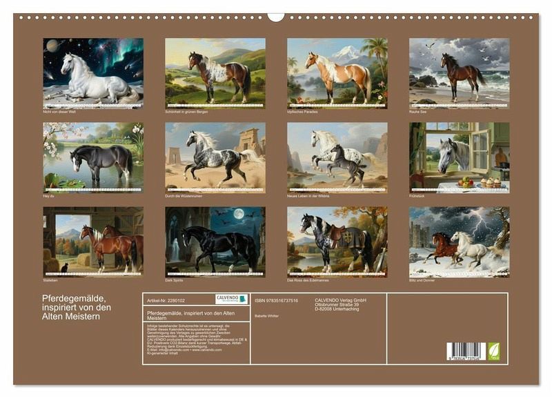 QUALITÄT - Hochwertiger Fotokalender mit 12 wunderschönen Motiven auf lichtbeständigem Bilderdruckpapier, robuste Spiralbindung mit Aufhängebügel.NACHHALTIG - deutliche Abfallreduzierung durch bedarfsgerechte Einzelstückfertigung, umweltfreundliches FSC-zertifiziertes Papier, Produktion in Deutschland, klimabewusste Logistik.PERFEKTES GESCHENK - Kalender für Freunde und Familie, für Kinder und Erwachsene, jung und alt, zu Weihnachten, Geburtstag oder zwischendurch.VIELFALT - Bildkalender in verschiedenen Formaten, z.B. DIN A5, DIN A4, DIN A3 sowie DIN A2. Ob Naturmotiv, Gemälde oder Fotos, ideal für ein persönliches Wohlfühlambiente.Pferdebilder im Stil alter Ölgemälde von Autor(in): Talpha