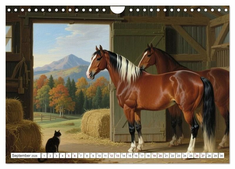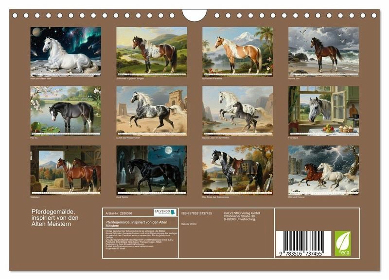 Erleben Sie die majestätische Schönheit des Pferdes in einer völlig neuen Dimension. Dieser liebevoll erstellte KI-Kalender vereint die Kraft modernster Technologie mit der Seele klassischer Malerei - inspiriert von den großen Meistern wie George Stubbs und Joseph Wright of Derby.