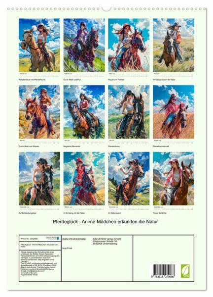 Entdecken Sie das faszinierende Zusammenspiel von Pferden und Anime-Mädchen mit unserem Kalender "Pferdeglück - Anime-Mädchen erkunden die Natur". Tauchen Sie ein in die zauberhafte Welt der Natur und spüren Sie die Freiheit, die jeder Ausritt mit sich bringt. Begleiten Sie die Anime-Mädchen auf ihren KI-generierten Abenteuern durch Wälder, über Wiesen und entlang malerischer Landschaften. Dieser Kalender ist ein Muss für alle Pferdeliebhaber, Anime-Fans und Naturliebhaber. Erleben Sie die Harmonie zwischen Mensch, Tier und Umgebung und lassen Sie sich von der Schönheit dieser einzigartigen Freundschaften inspirieren. Perfekt für jeden, der die Verbindung zwischen Mensch und Tier sowie das Reiten als Hobby schätzt.