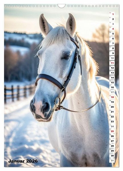 Dieser Pferdekalender begeistert mit eindrucksvollen Aufnahmen edler Pferde und zeigt die Vielfalt dieser majestätischen Tiere in allen Jahreszeiten. Ob stolzer Hengst, eleganter Schimmel oder verspieltes Fohlen - jede Seite präsentiert detailreiche Portraits und stimmungsvolle Szenen in der Natur. Pferdeliebhaber und Reitsportfreunde erhalten mit diesem Tierkalender eine besondere Sammlung ausdrucksstarker Pferdebilder, die Freude und Inspiration für das ganze Jahr bringen. Von sanften Frühlingswiesen über goldene Herbstlandschaften bis hin zu winterlichen Momenten wird die Schönheit der Pferde eindrucksvoll in Szene gesetzt. Die hochwertigen Motive machen diesen Pferdekalender auch zu einer idealen Geschenkidee für Tierfreunde. Bilder mit KI generiert.