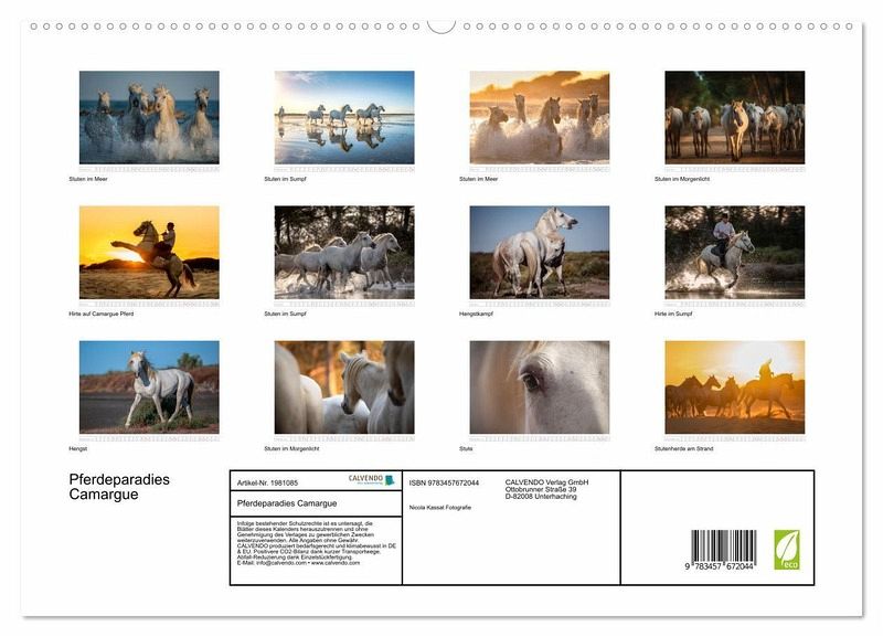 QUALITÄT - Hochwertiger Fotokalender mit 12 wunderschönen Motiven auf lichtbeständigem Bilderdruckpapier, robuste Spiralbindung mit Aufhängebügel.NACHHALTIG - deutliche Abfallreduzierung durch bedarfsgerechte Einzelstückfertigung, umweltfreundliches FSC-zertifiziertes Papier, Produktion in Deutschland, klimabewusste Logistik.PERFEKTES GESCHENK - Kalender für Freunde und Familie, für Kinder und Erwachsene, jung und alt, zu Weihnachten, Geburtstag oder zwischendurch.VIELFALT - Bildkalender in verschiedenen Formaten, z.B. DIN A5, DIN A4, DIN A3 sowie DIN A2. Ob Naturmotiv, Gemälde oder Fotos, ideal für ein persönliches Wohlfühlambiente.Die weißen Pferde der Camargue in den Sümpfen und am Strand von Autor(in): Nicola Kassat Fotografie