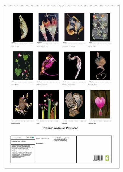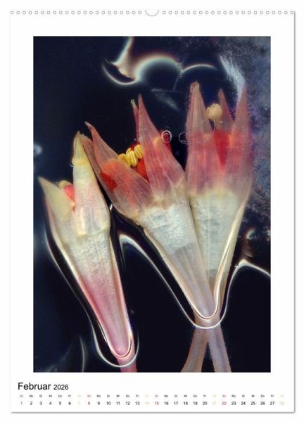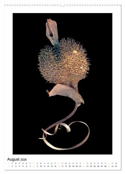 Dieser Kalender besteht aus einer kleinen Auswahl von Photographien, die ohne Kamera entstanden sind. Aufnahmemedium ist ein Flachbettscanner, der dazu dient, die faszinierende und morbide Schönheit von Blüten, Samen und Pflanzenteilen abzubilden. Durch große Nähe und Direktheit erscheinen die Objekte als Kostbarkeiten.