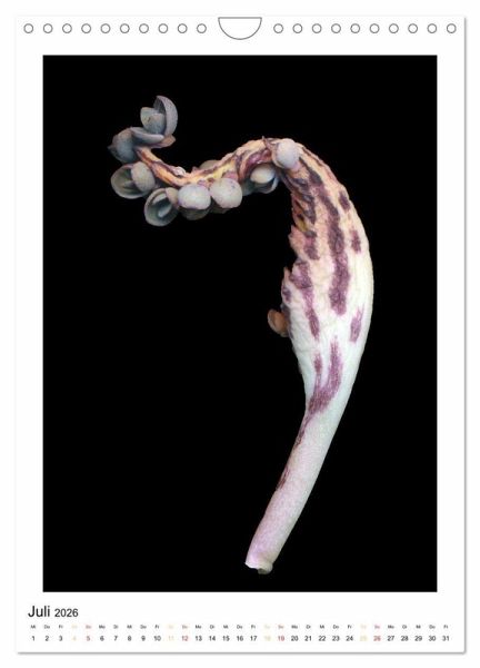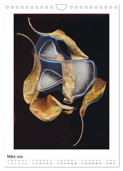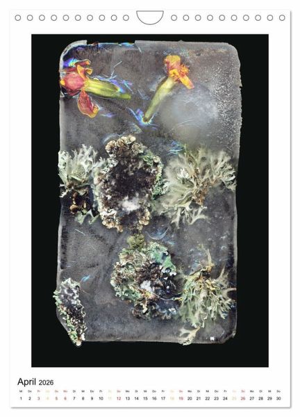 Dieser Kalender besteht aus einer kleinen Auswahl von Photographien, die ohne Kamera entstanden sind. Aufnahmemedium ist ein Flachbettscanner, der dazu dient, die faszinierende und morbide Schönheit von Blüten, Samen und Pflanzenteilen abzubilden. Durch große Nähe und Direktheit erscheinen die Objekte als Kostbarkeiten.