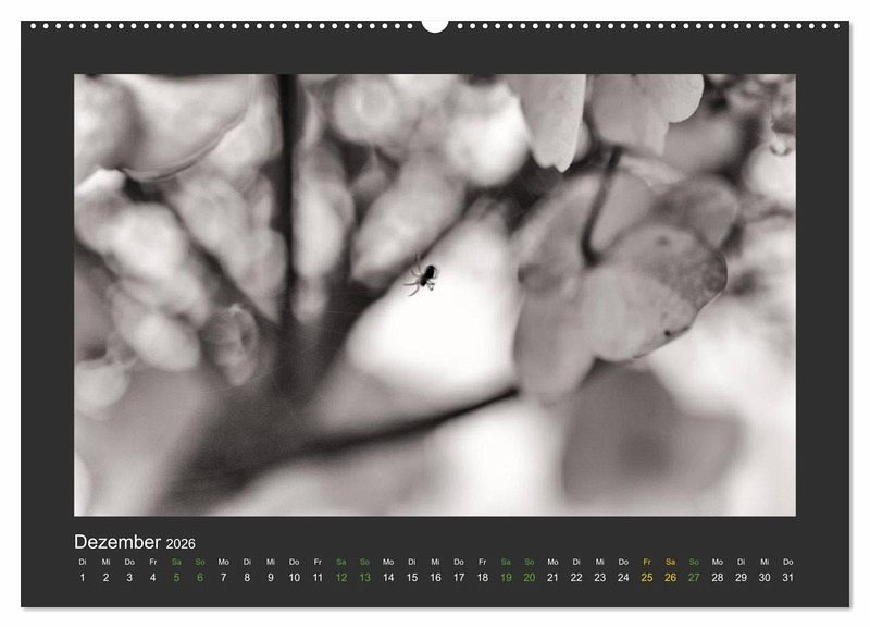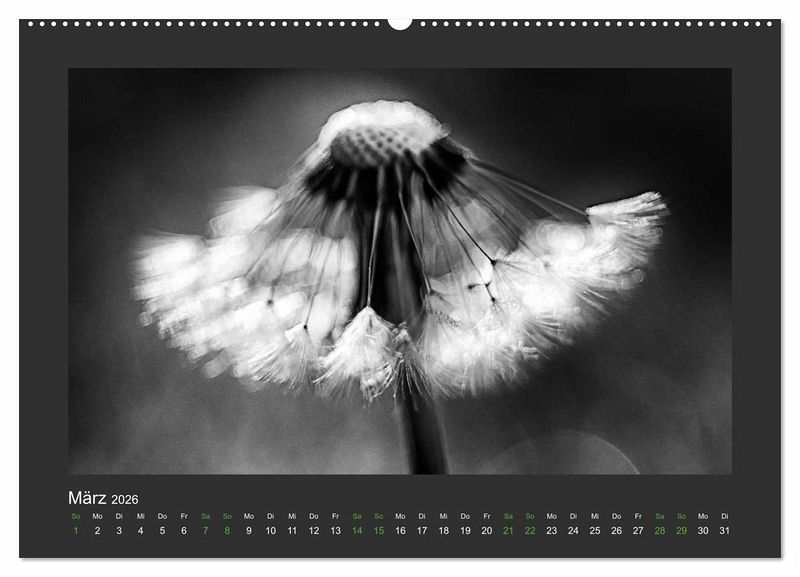 Wald- und Wiesenpflanzen außergewöhnlich in Szene gesetzt. Durch die Schwarz-Weiß-Umsetzung reduziert auf Form und Struktur, begleiten Sie 13 Fine-Art-Makroaufnahmen ein ganzes Jahr lang. Genießen Sie die Pflanzenwelt, die Schönheit der Natur auf eine stilvolle und reduzierte Weise.