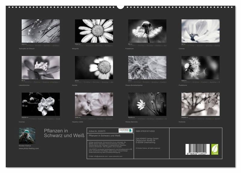 PREMIUM-LINIE - Brillanter Fotokalender mit 12 wunderschönen Motiven, Kunstdruck in Hochglanz in Museumsqualität.QUALITÄT - edle Materialien, stabile Rückwand mit 2 innovativen Einstecktaschen für eine optimale Präsentation an der Wand.NACHHALTIG - deutliche Abfallreduzierung durch bedarfsgerechte Einzelstückfertigung, umweltfreundliches FSC-zertifiziertes Papier, Produktion in Deutschland, klimabewusste Logistik.PERFEKTES GESCHENK - Kalender für Freunde und Familie, für Kinder und Erwachsene, jung und alt, zu Weihnachten, Geburtstag oder zwischendurch.Wald- und Wiesenpflanzen in Schwarz und Weiß von Autor(in): Kirsten Karius