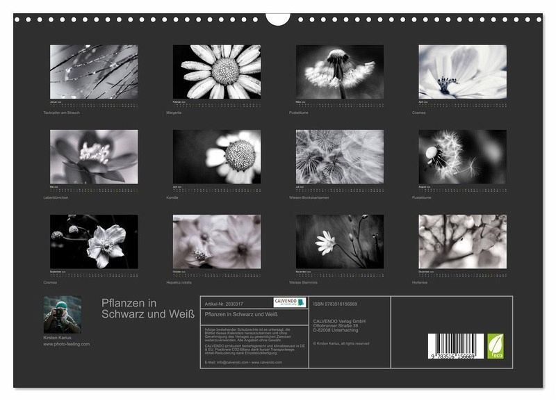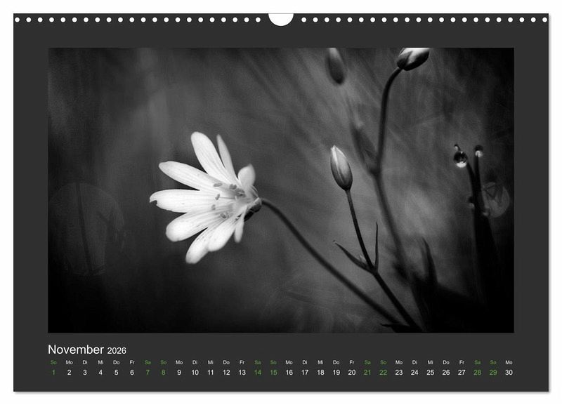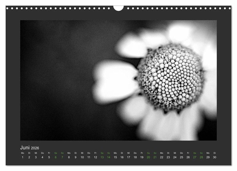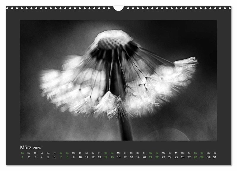 Wald- und Wiesenpflanzen außergewöhnlich in Szene gesetzt. Durch die Schwarz-Weiß-Umsetzung reduziert auf Form und Struktur, begleiten Sie 13 Fine-Art-Makroaufnahmen ein ganzes Jahr lang. Genießen Sie die Pflanzenwelt, die Schönheit der Natur auf eine stilvolle und reduzierte Weise.