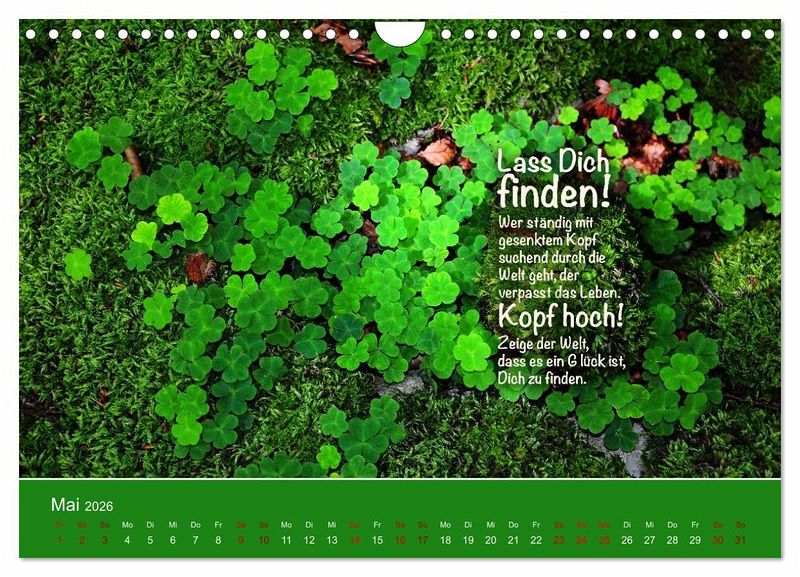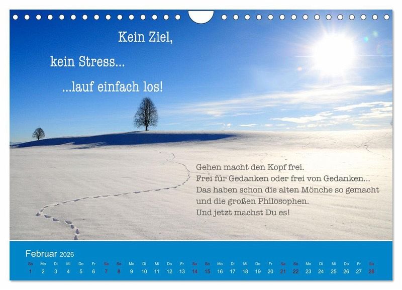 Du brauchst weder einen Therapeuten, noch einen Psychologen oder einen Personal Trainer. Alles was Du brauchst, um Dein Leben zu optimieren, ist gesunder Menschenverstand. Die 12 Kalenderblätter sind ein Anfang und unterstützen Dich dabei mit kleinen Gedankenstützen.