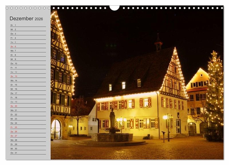 Dezember: Rathäuser von Pfullingen in weihnachtlichem Glanz