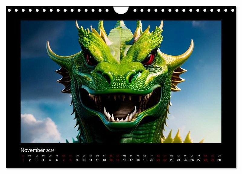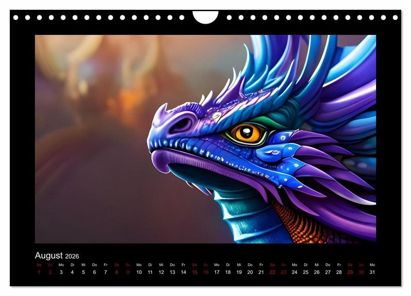 Liebevoll gestaltete Drachenportraits fangen die Essenz dieser mystischen Wesen ein und lassen uns in eine Welt voller Abenteuer, Magie und unendlicher Möglichkeiten eintauchen. Dieser Kalender ist ein Blickfang an der Wand.