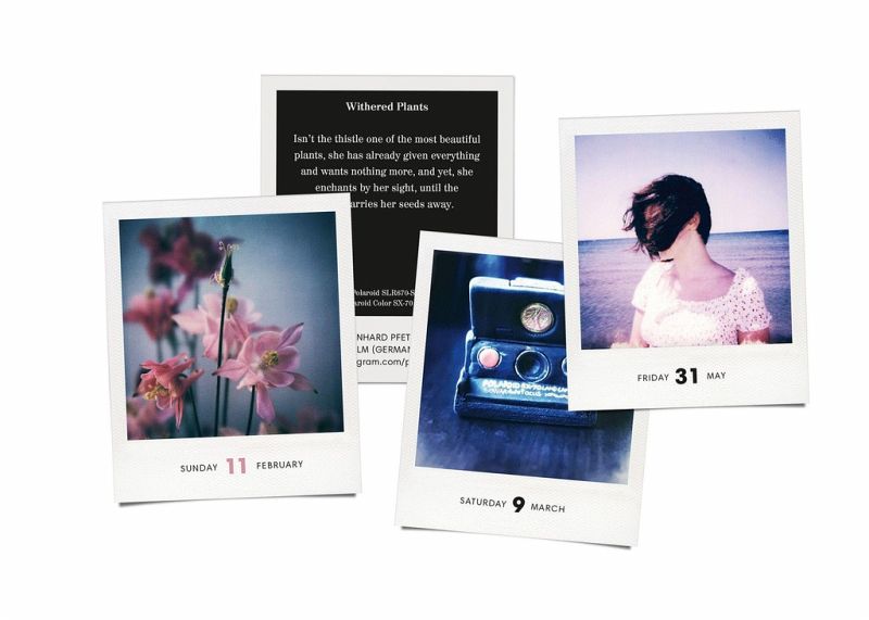 Der Foto- Abreißkalender beglückt uns auch 2024 wieder Tag für Tag mit einem Sofortbild und einer eigenen kleinen Geschichte. Auf der Vorderseite jedes Kalenderblattes befindet sich ein Sofortbild in Originalgröße, auf der Rückseite ein kleiner Text zur Entstehung des Bildes sowie Informationen zum Fotografen und zum verwendeten Film.