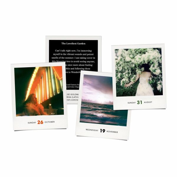 Der Foto- Abreißkalender beglückt uns auch 2025 wieder Tag für Tag mit einem Sofortbild und einer eigenen kleinen Geschichte. Auf der Vorderseite jedes Kalenderblattes befindet sich ein Sofortbild in Originalgröße, auf der Rückseite ein kleiner Text zur Entstehung des Bildes sowie Informationen zum Fotografen und zum verwendeten Film.