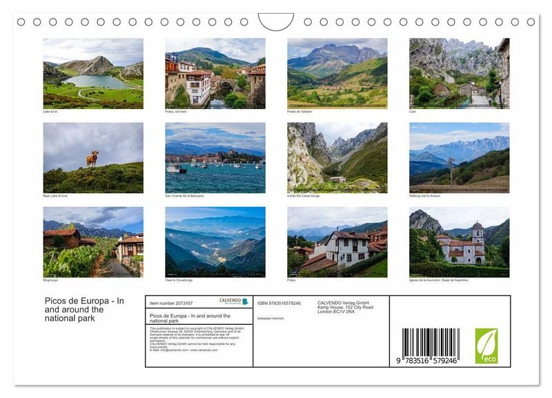 QUALITY - High-quality photo calendar with 12 beautiful images on light-resistant paper, robust spiral binding with hanger.SUSTAINABLE - Significant waste reduction due to print-on-demand production, environmentally friendly FSC-certified paper, produced in the UK, climate-conscious logistical processes.PERFECT GIFT - calendars for friends and family, for children, all ages and all occasions, from Christmas to birthdays and everything in between.LOTS OF CHOICE - Wall calendars in different sizes (DIN A4 and DIN A3), for any topic and personal taste, featuring photography, painting and illustrations.Lush and craggy at the same time, the Picos de Europa are a beautiful national park in Northern Spain, author: Sebastian Heinrich