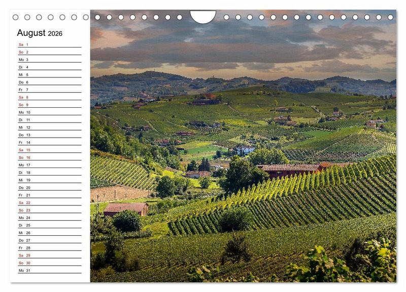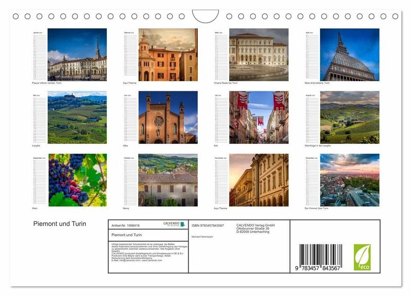 Das für Trüffel und herausragende Weine weltberühmte Piemont ist nicht nur ein Paradies für kulinarische Genießer. Auch Natur- und Wanderfreunde kommen in der durch ihre Weinhügel geprägten Landschaft auf ihre Kosten. Zudem laden Turin und malerische Orte wie Alba oder Asti zum Einkaufen und Flanieren ein. Die Bilder von einer der schönsten Regionen Italiens wecken Erinnerungen an schöne Urlaubszeiten oder können als Inspiration für zukünftige Reisen dienen.