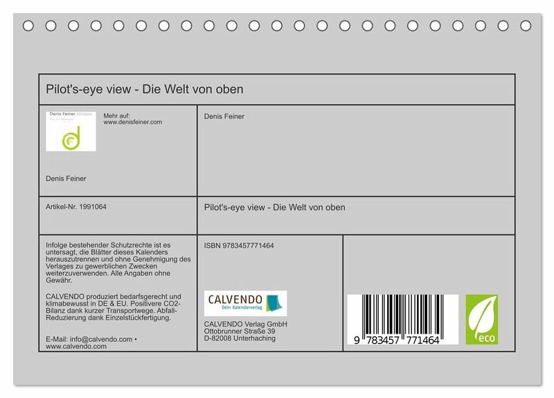QUALITÄT - Hochwertiger Fotokalender mit 12 wunderschönen Motiven auf lichtbeständigem Bilderdruckpapier, robuste Spiralbindung.NACHHALTIG - deutliche Abfallreduzierung durch bedarfsgerechte Einzelstückfertigung, umweltfreundliches FSC-zertifiziertes Papier, Produktion in Deutschland, klimabewusste Logistik.PERFEKTES GESCHENK - Kalender für Freunde und Familie, für Kinder und Erwachsene, jung und alt, zu Weihnachten, Geburtstag oder zwischendurch.VIELFALT - Bildkalender in verschiedenen Formaten, z.B. DIN A5, DIN A4, DIN A3 sowie DIN A2. Ob Naturmotiv, Gemälde oder Fotos, ideal für ein persönliches Wohlfühlambiente.Luftbilder aus allen Teilen der Erde von Autor(in): Denis Feiner